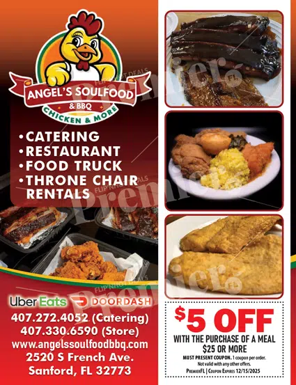 Angelโs Soul Food & BBQ is a local favorite in Sanford, Florida, serving authentic Southern soul food and barbecue in a warm, down-home setting. Known for rich flavors, generous portions, and traditional recipes, Angelโs appeals to anyone craving hearty comfort food made with care. From family dinners to quick takeout meals, this spot delivers food that feels homemade and satisfying.