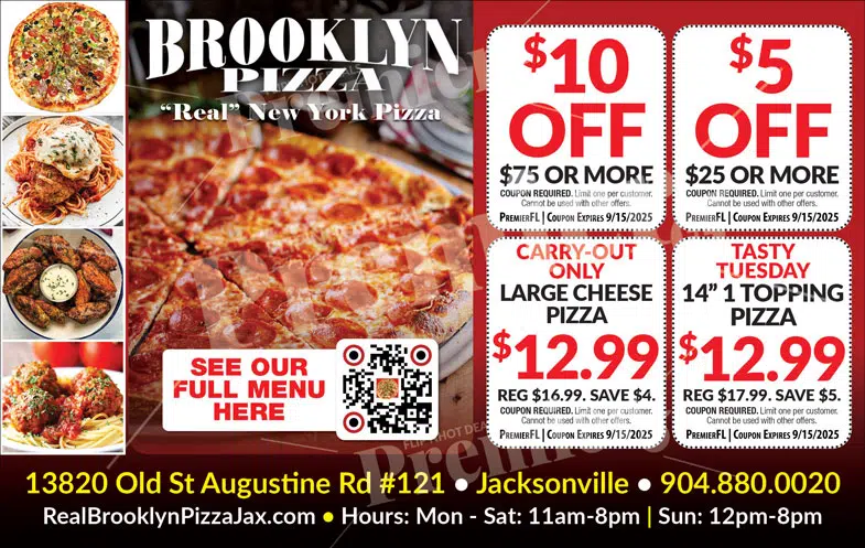 Home Food & DrinkDowntown JacksonvilleBrooklyn Pizza Coupons