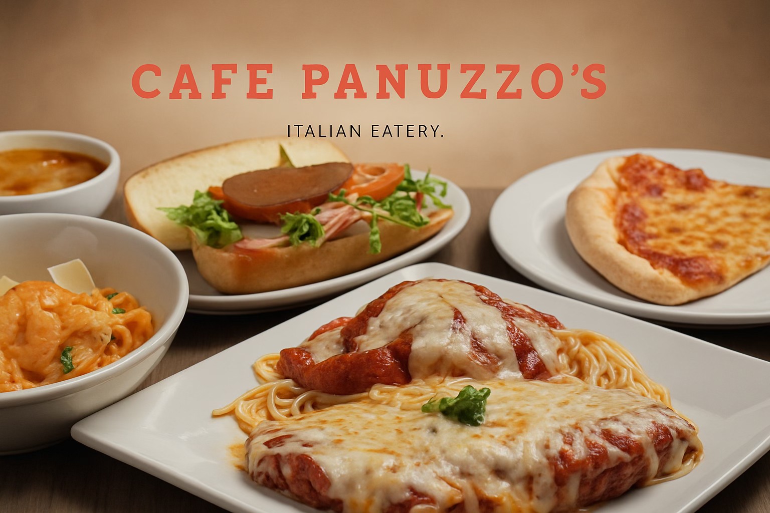Enjoy handcrafted pizzas, classic pasta dishes, fresh seafood entrées, and chef-inspired daily specials. With weekly promotions, happy hour offerings, and a full-service catering menu, Cafe Panuzzo’s is the perfect choice for casual dinners, celebrations, and special events.