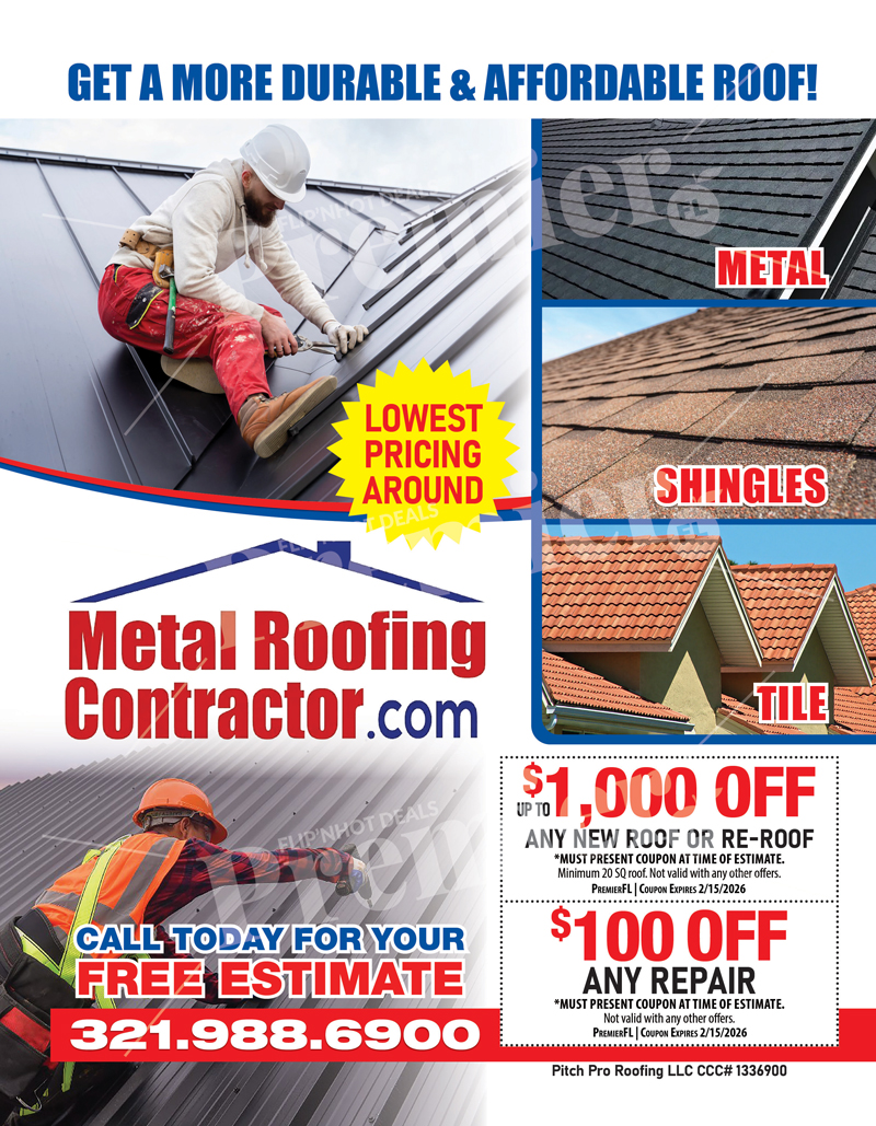 Must present coupon at time of free estimate. Minimum 20 SQ roof. Not valid with any other offers. PremierFL | Expires 2/15/2026