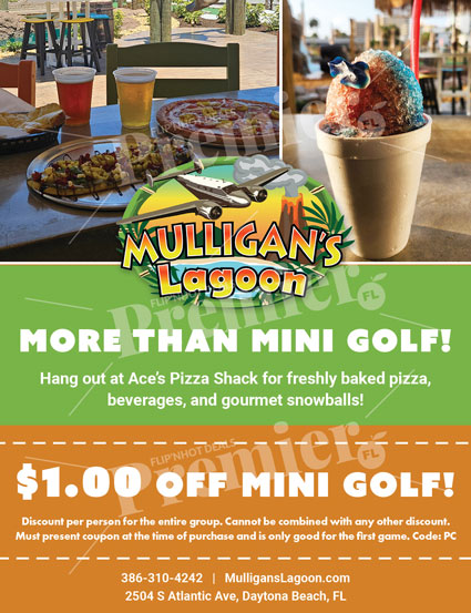 Mulligan’s Lagoon is Daytona Beach’s go-to destination for family-friendly fun, exciting mini golf, and delicious food all in one place. Conveniently located on Atlantic Avenue, this vibrant entertainment spot offers more than just mini golf — it’s the perfect place to relax, play, and enjoy great eats near the beach.