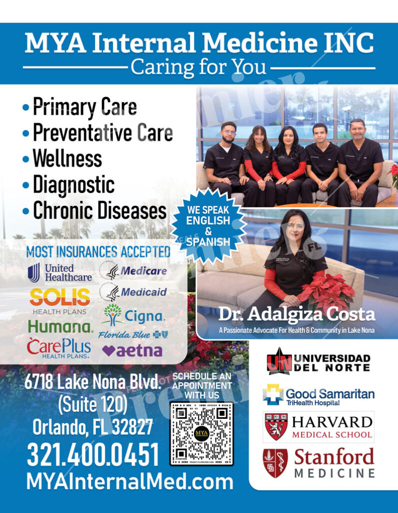 MYA Internal Medicine Inc, led by Dr. Adalgiza Costa, proudly serves the Lake Nona and Orlando communities with personalized, compassionate medical care. The clinic focuses on preventative health, chronic disease management, and wellness for adults of all ages โ ensuring every patient receives the attention and care they deserve.