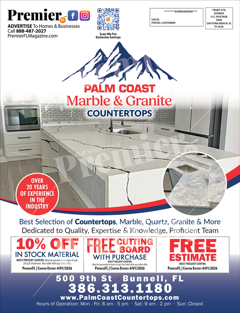 From consultation to installation, Palm Coast Marble & Granite provides personalized service and guaranteed satisfaction on every project. Visit their Bunnell showroom to explore premium materials and exclusive savings.
