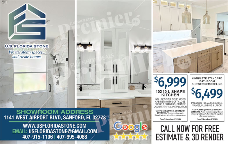US Florida Stone is a trusted home remodeling company specializing in high-quality kitchen and bathroom transformations throughout Central Florida. With a dedicated showroom in Sanford, US Florida Stone helps homeowners turn outdated spaces into modern, functional, and beautifully designed interiors.